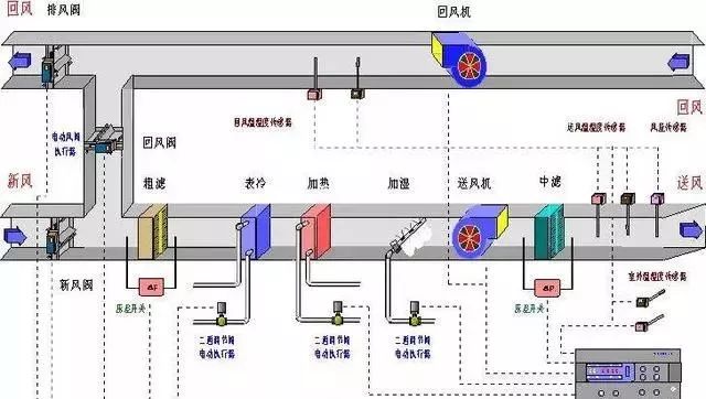 其工作原理是當(dāng)空調(diào)區(qū)負(fù)荷發(fā)生變化時,系統(tǒng)末端裝置自動調(diào)節(jié)送入房間的送風(fēng)量,確保室內(nèi)溫度保持在設(shè)計范圍內(nèi),從而使得空氣處理機組在低負(fù)荷時的送風(fēng)量下降,空氣處理機組的送風(fēng)機轉(zhuǎn)速也隨之而降低,達(dá)到節(jié)能的目的。變風(fēng)量系統(tǒng)通常由空氣處理設(shè)備、送(回)風(fēng)系統(tǒng)、末端裝置(變風(fēng)量箱)及送風(fēng)口和自動控制儀表等組成。